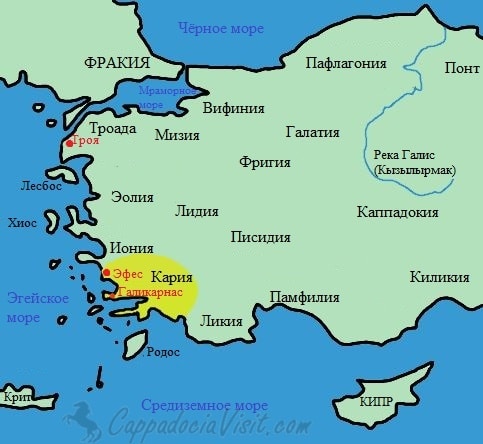 Регион Кария и город Галикарнас на карте