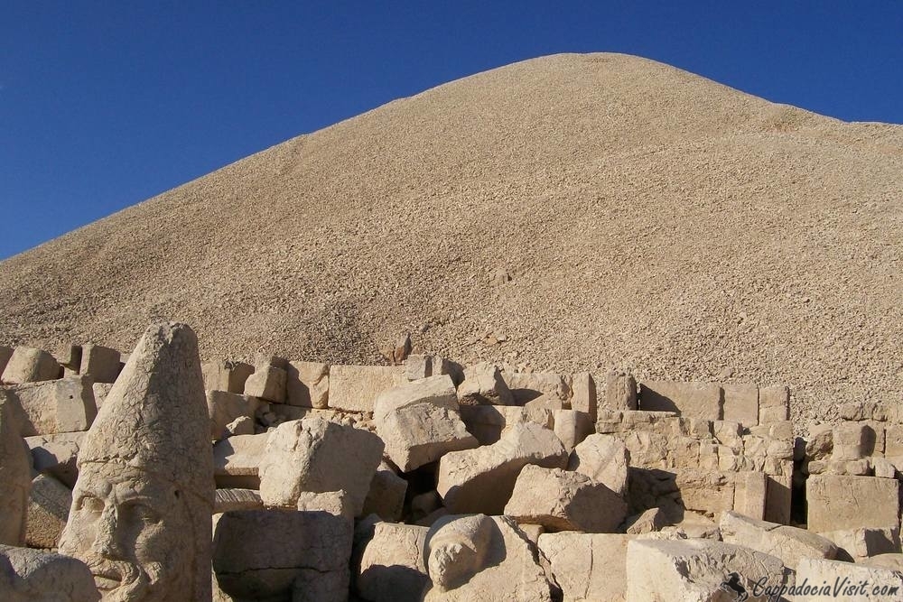 Эта гора, находится недалеко от города Адыяман. На вершине горы Немрут располагается гробница – святилище царя Коммагены Антиоха Теоса. Гробница представляет собой большой курган из мелких камней, высота которого составляет почти пятьдесят метров, а радиус порядка 150 метров. Вокруг гробницы на восточной и западной террасе некогда существовали открытые храмы. Восточную террасу украшали огромные статуи сидячих богов высотой 8 метров. После землетрясений головы и верхние части некоторых каменных фигур упали на землю. Подробнее >>>