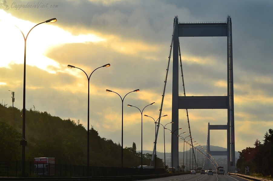 Первый мост через Босфорский пролив, соединивший европейскую и азиатскую части Стамбула это Босфорский мост. Официальное открытие моста состоялось в 1973 году, к 50-летней годовщине основания Турецкой Республики. Длина моста 1560 метров, ширина 33, а высота дорожного полотна над водой — 64 метра. Он открыт для пешеходов только раз в году – во время Стамбульского межконтинентального марафона. В 2016 году Босфорский мост переименован в “Мост мучеников 15 июля” в память о погибших в результате попытки переворота.