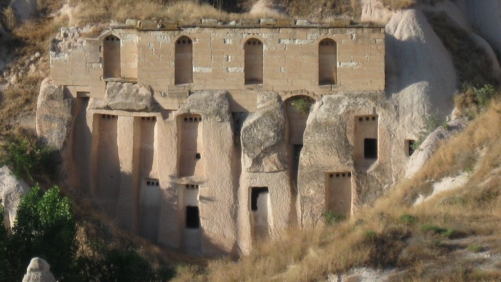 Лирическое отступление: По преданию христианство в Каппадокию принес апостол Павел. Примерно в 4 веке н.э. город Кайсери (Caesarea) становится важным религиозным центром. А в окрестных долинах возникают многочисленные монастыри. В то время здесь жили 3 Великих каппадокийца: Григорий Нисский (город Ниса – современный Невшихир), Василий Кесарийский (город Кесария – современный Кайсери) и Григорий Богослов. Они уважаемы как в Православной, так и в Римско-Католической церкви. То есть в Каппадокии существовало христианство – все-таки 4-ый век. Как помнится Князь Владимир крестил Русь в 10 веке (Княгиню Ольгу оставим пока в покое, все-таки считается что Русь крестил ее внук). Вы только вдумайтесь! В Киеве, Великом Новгороде, Пскове еще не строили православные храмы и их не расписывали Феофан Грек и Андрей Рублев, а в Капподокии существовали целые монастырские православные комплексы. Это удивительно! Скальные церкви Каппадокии еще интересны тем, что в некоторых можно видеть непривычное нам оформление (примерно 8-9 века) – периода иконоборчества (когда были запрещены изображения святых в образе людей) – не было на Руси вообще; так как христианство пришло к нам позже. Ислам и христианство в Каппадокии существовали веками в полной любви и согласии, прекратившие свое существование в этих местах лишь в 20-е гг. 20 века (времена обмена населением).